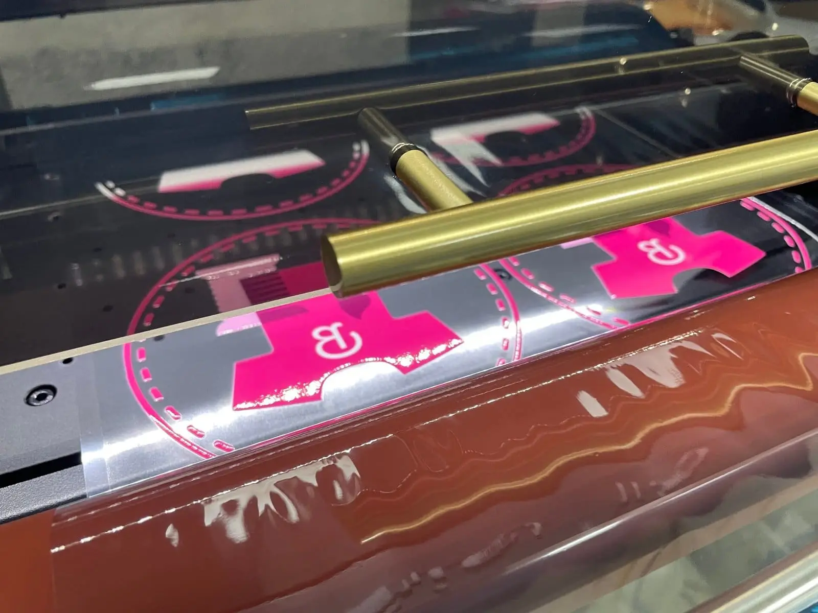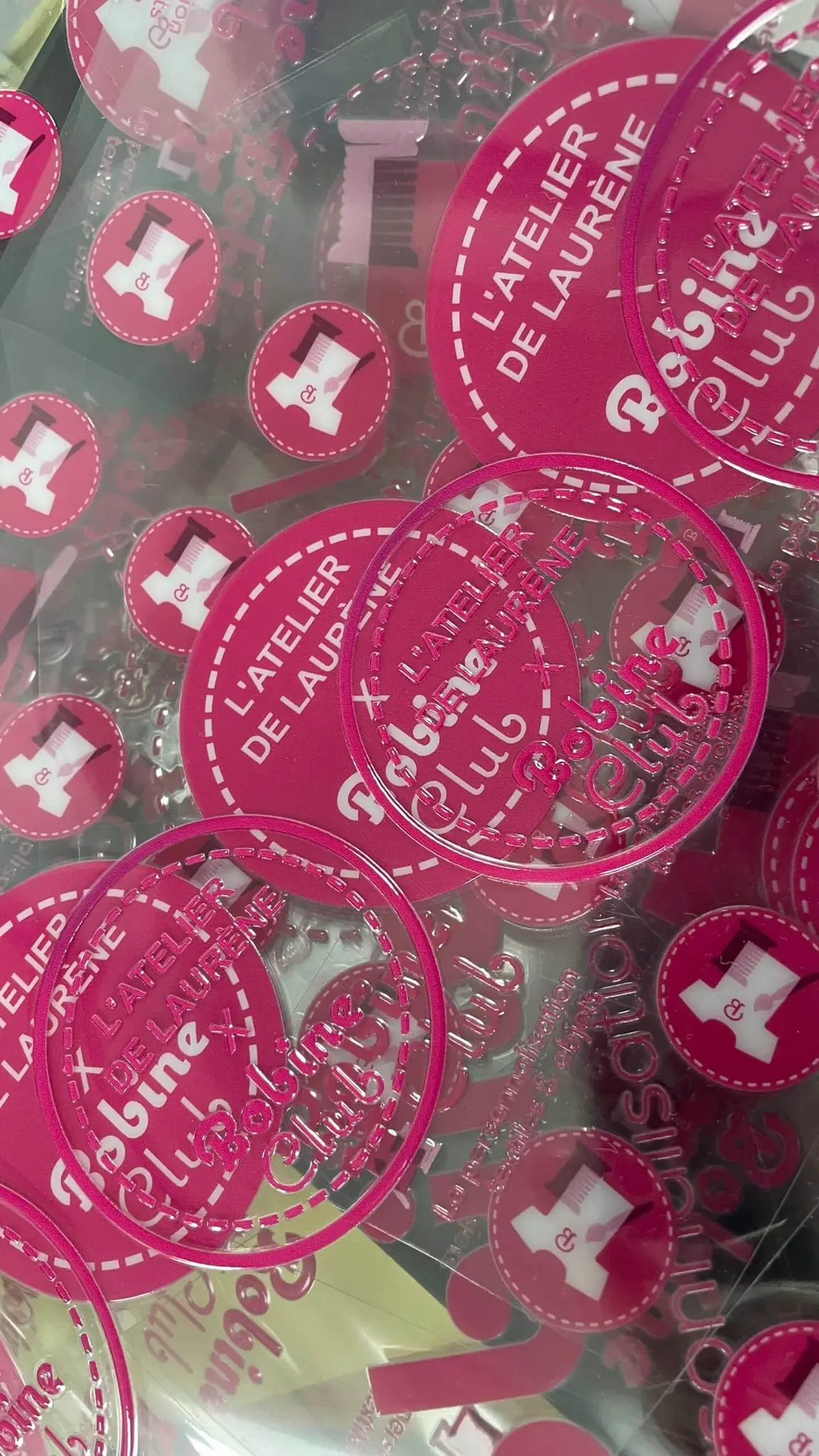Votre logo est imprimé en quadri sur un film enduit de colle et séché par UV puis couvert de vernis protecteur